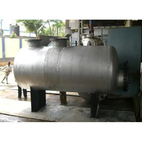 Horizontal SS storage tank for industrial use. Capacity ranges from 500-1000 L with material thickness of 6.5-8 mm. Made from stainless steel.