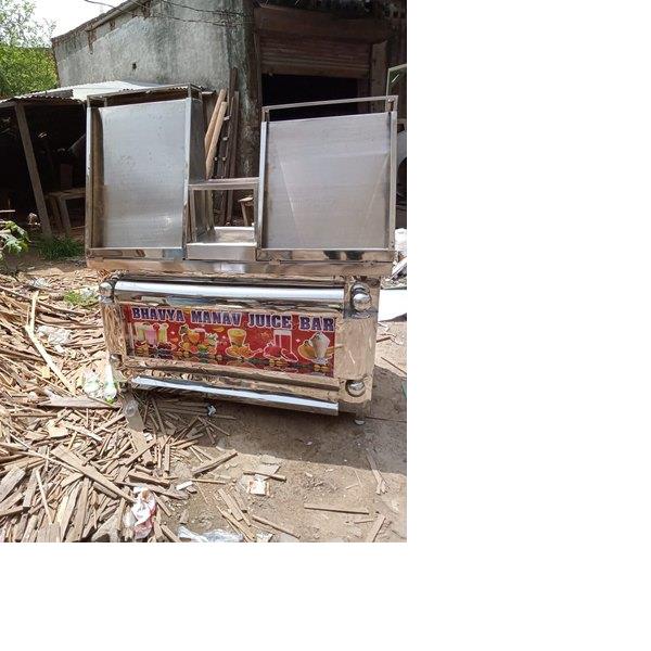 A stainless steel display counter for juice, manufactured in India. This model is designed for showcasing juice products effectively. Simple and durable design.