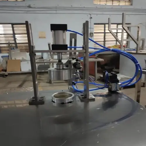 SS PLC controlled lug capping machine with 8 BPM capacity for bottle capping. Requires 6kg air pressure. GMP packaging details included.
