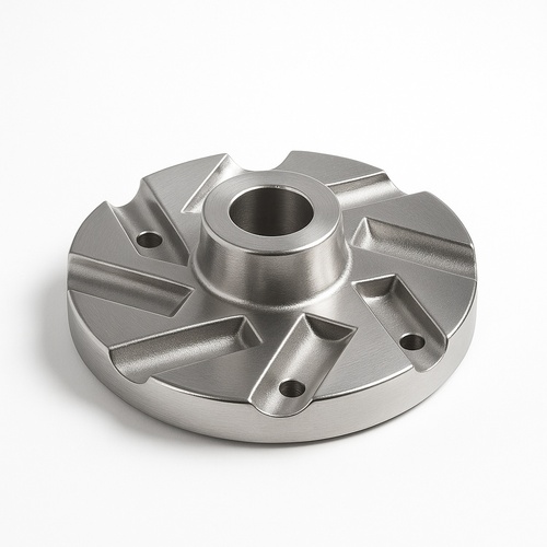 Round SS investment casting die for wheel hubs. Features 45 HRC hardness and polished surface finish. Operates between -20 to 50°C. Made in India.