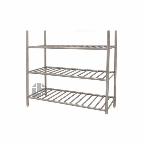 3-layer stainless steel rack for pharmaceutical lab tools. Silver color, each layer supports 50 kg. Designed for efficient laboratory organization.