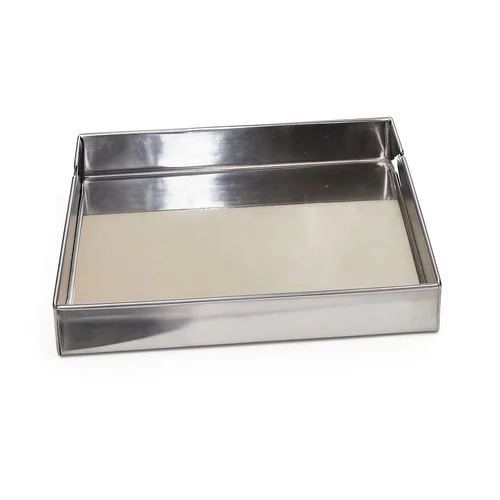 Corrosion-resistant SS202 rectangle tray with polished silver finish. Packaged in a box for secure transport. Ideal for various industrial applications.
