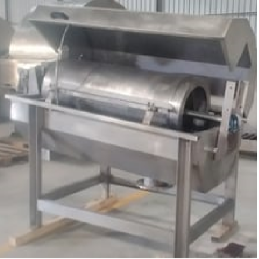 Rotary Drum Filter, SS304/SS316, customized mesh size (wedge wire/wire mesh), 10-12 RPM speed, SS304 spray nozzles. Available in stock, Made in India.