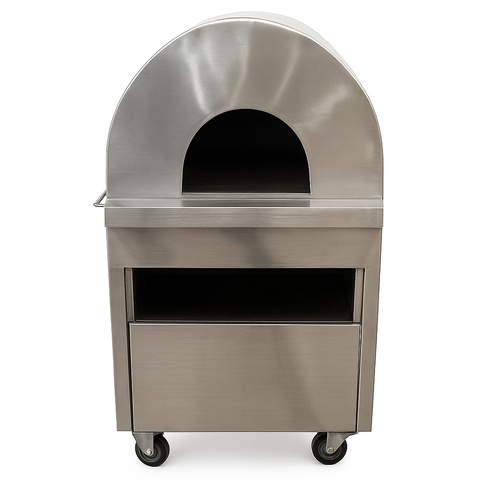 Single deck, single door stainless steel (SS202) wood-fired pizza oven. Electric powered, ideal for hotel and restaurant use. Features a durable SS body.