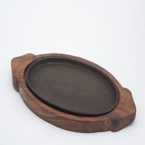 SS Wood Rectangular Sizzler Plate, 9 Inch Restaurant