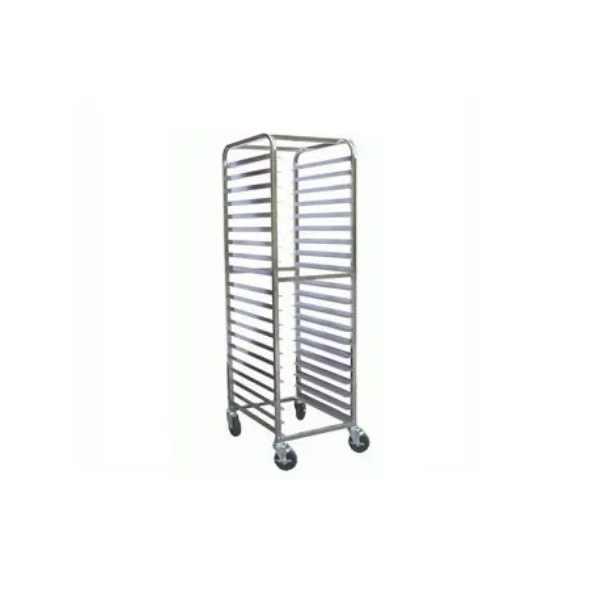 Rotable stainless steel tray rack trolley made from SS202 grade. Size: 36x18x72 inches.