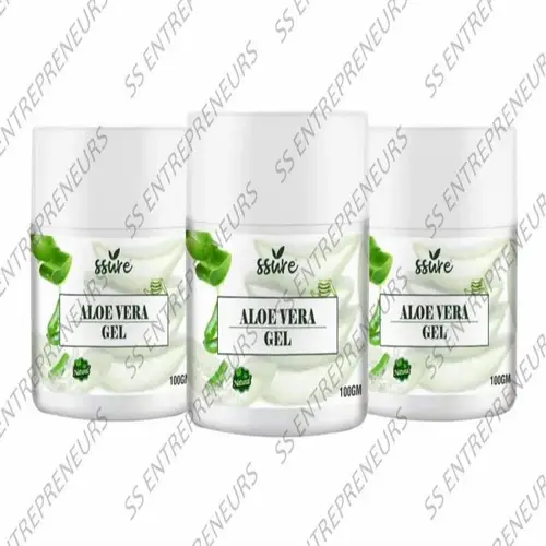 Ssure organic aloe vera hair gel, 100gm jar. Fragrance-free. Daily moisturizer for face, skin, hair, and post-shave lotion for men. Made in India.