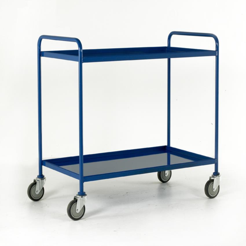 Industrial trolley with 2 color-coated stainless steel trays, 4 wheels, and 100-150 kg loading capacity. Ideal for industrial use.