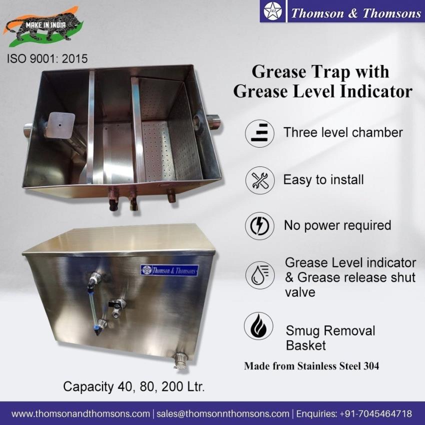 Stainless Steel 304 grease collector with 40 Ltr capacity. Includes a grease level indicator and measures 18"" x 12"" x 13"" for sewage water.