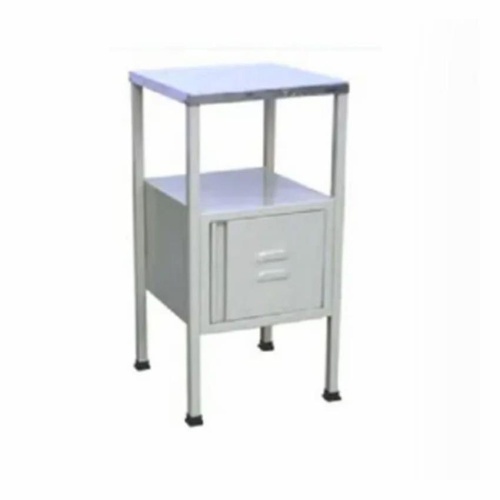 Portable stainless steel bedside locker, polished silver finish. Plain design, maximum height 3 feet. Made in India. Suitable for general use.