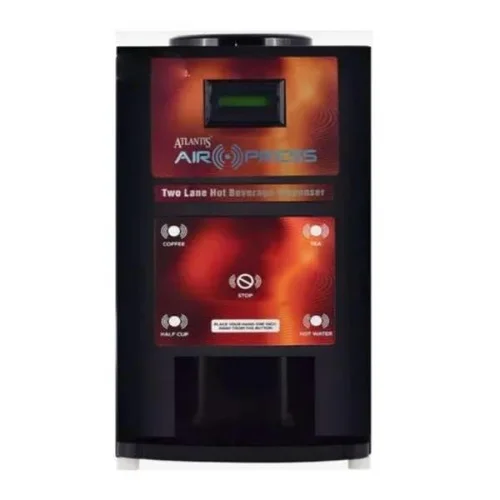 Automatic stainless steel tea coffee vending machine for cafes. Single phase, 220V, 50Hz, with 4 HP motor. Electric powered for efficient beverage service.