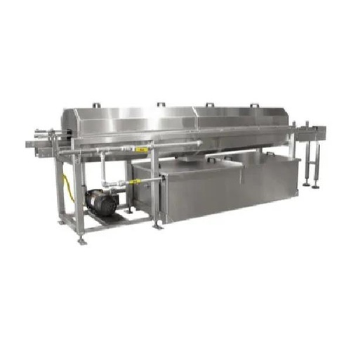 Automatic conveyor-type can washer made of stainless steel. Achieves a production capacity of 700-800 cans per hour. Ideal for high-volume operations.