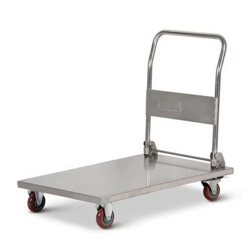Corrosion-resistant stainless steel hand trolley. Customizable cart size for specific client needs, with a load capacity of 50-100 kg.