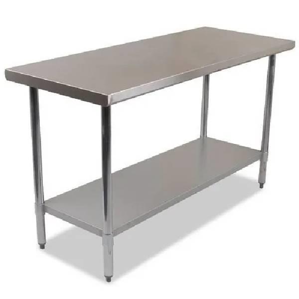 Stainless steel center table with dimensions 500x500mm. Features a robust construction and a sleek metallic finish, ideal for modern spaces.