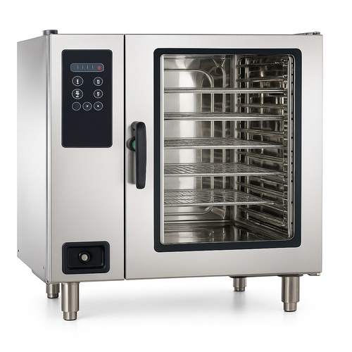 Stainless Steel Combi Oven. Durable construction for commercial kitchens. Designed for reliable performance and longevity in demanding culinary environments.