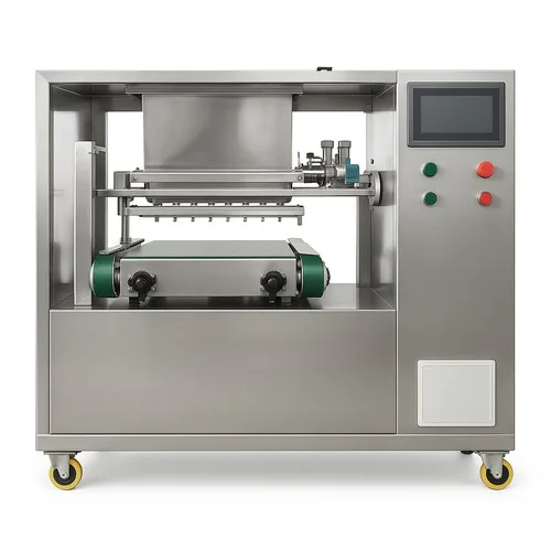 Stainless steel cookies wirecut and dropping machine featuring 5 nozzles. Efficiently cuts and drops dough for consistent cookie production. Ideal for bakery use.