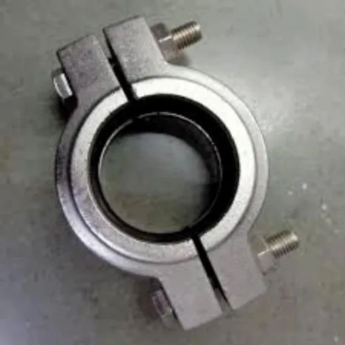 Stainless Steel Victaulic Type Coupling, 4-inch diameter. Features high corrosion resistance and 50 HRC hardness. Grey color.