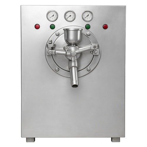 Automatic, 100 Litre dairy plant ice cream churner. Features polished SS302 grade stainless steel body, 3 phase, 415V. Height is 4ft.