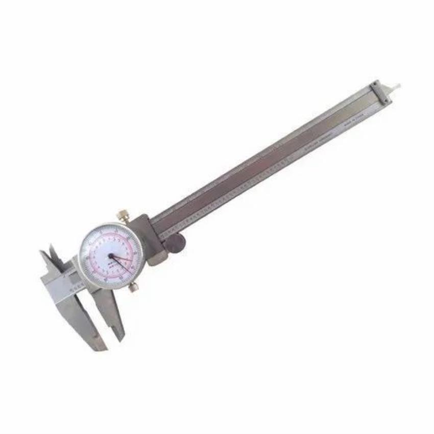 Portable stainless steel dial caliper with a 6-inch maximum measurement. Features a division of 0.001 inches. Weighs 12.0 ounces, suitable for accurate industrial and workshop use.