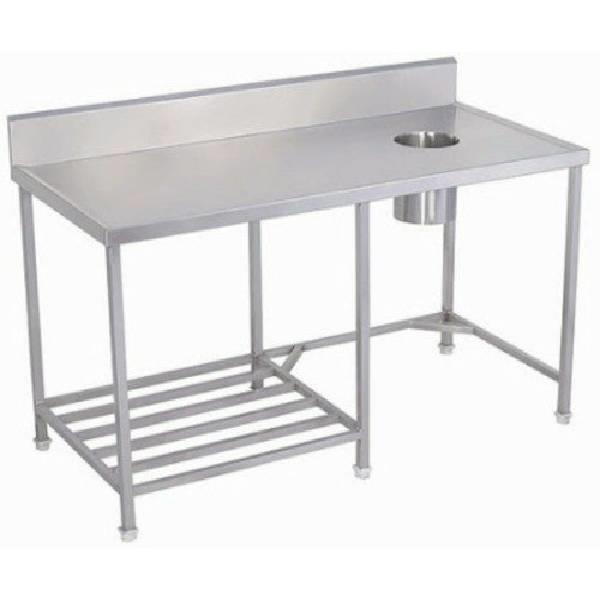 Durable stainless steel landing table for soiled dishes. Features robust construction suitable for commercial kitchens. Dimensions, color, and height vary by model, ensuring versatile application.