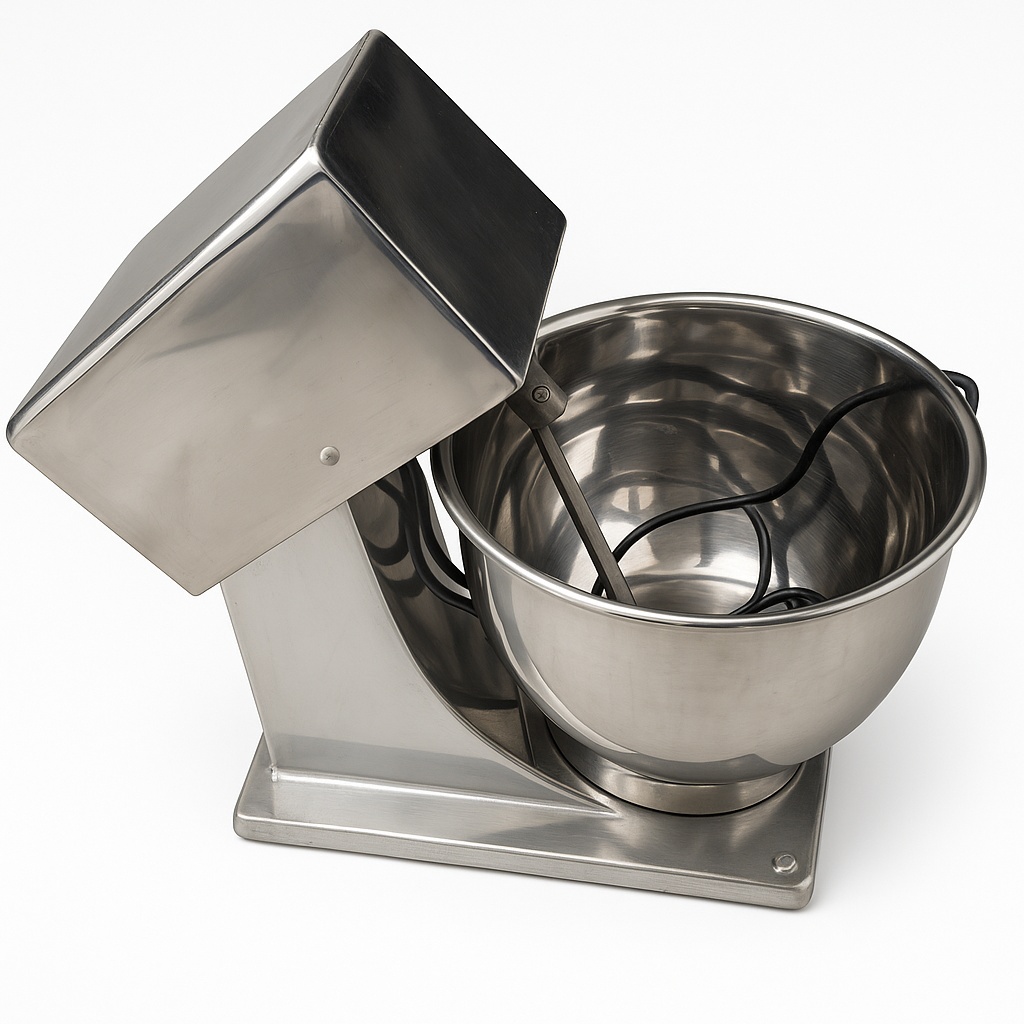 Semi-automatic 5kg stainless steel dough mixer for hotels and restaurants. Electric powered, 2 HP motor, 300 RPM mixer speed.