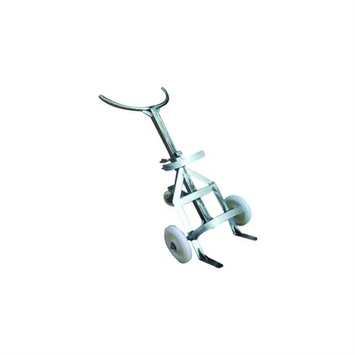 SS-304 stainless steel drum trolley with 350 kg capacity. Features 3 or 4 wheels for stability and easy maneuverability in industrial settings.