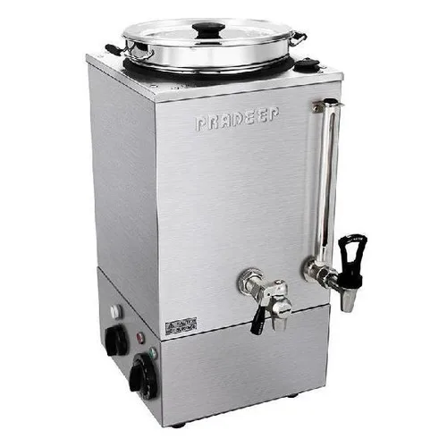 This 10-liter stainless steel electric boiler operates on electric power. Ideal for commercial and domestic use, it ensures efficient heating for beverages.