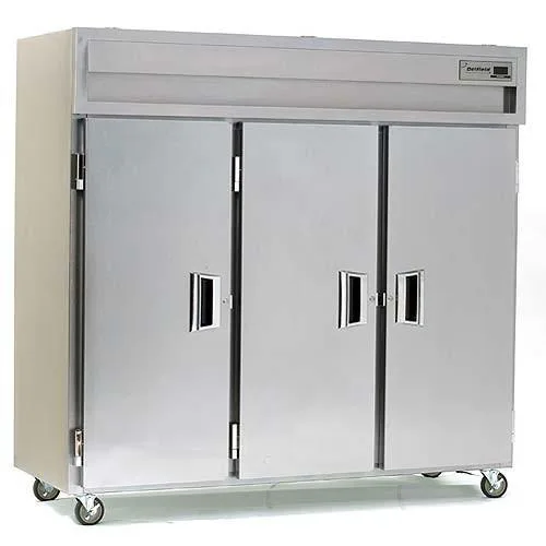 Durable stainless steel refrigerator with three doors. Features SS 202/304 grade construction and a matte finish. Operates on electricity and includes a 1-year warranty. Ideal for commercial use.