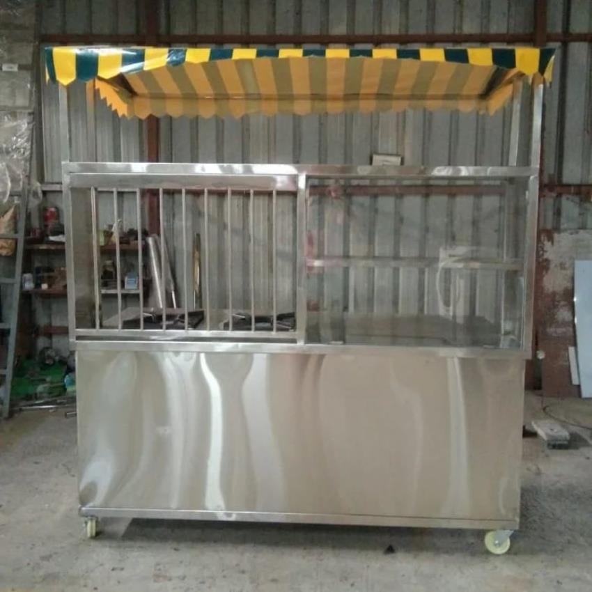 Stainless steel fast food cart, grade 202 and 304. 150 kg load capacity. Available in steel color.