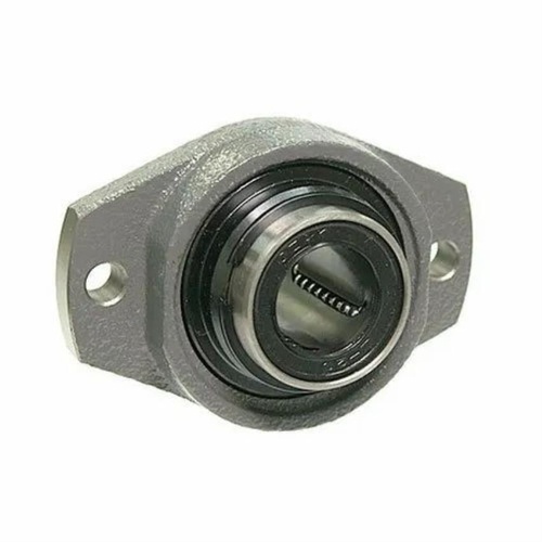 Flanged linear block made from stainless steel. Features 50 HRC hardness, round hole shape, polished finish, 8mm thickness, and 2 Kg weight. Packaged in a box.