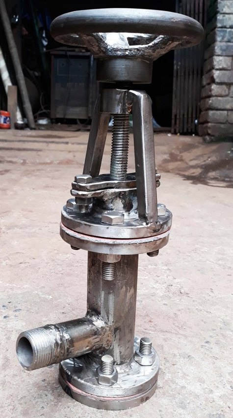 2 inch stainless steel flush bottom ball valve with screwed connection. Rated for high pressure and high temperature media. WOG 150, steel ball construction.