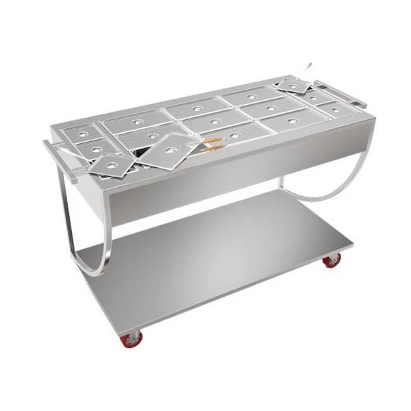 Durable stainless steel platform trolley with polished finish and four wheels for easy mobility. Ideal for hotels, restaurants, and hospitals. Features tensile strength and easy installation.