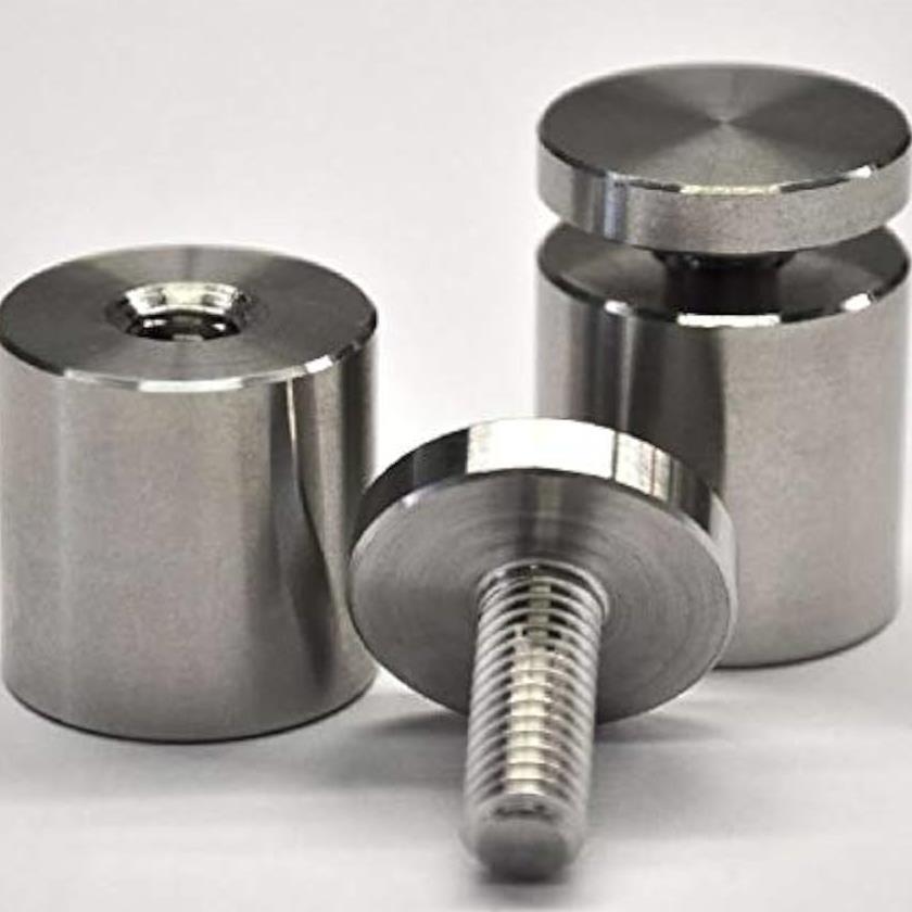 SSG007 stainless steel stud, 1-inch round, for glass and acrylic applications. Grade A1, steel finish, durable for various projects. Packaged in plastic packets.