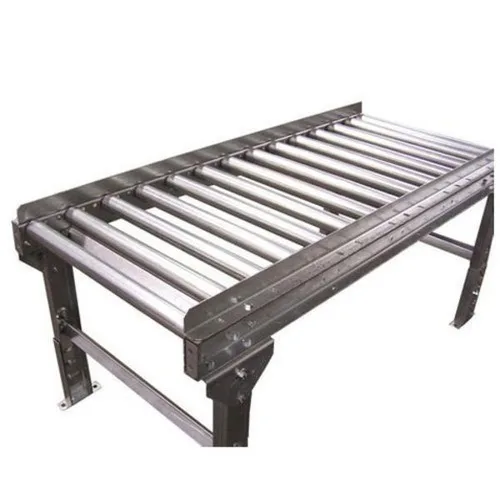 SS304 stainless steel gravity roller conveyor for industrial applications. Handles 50-100 kg/feet. Available in SS316 and SS202. Minimum order 1 unit. Durable and corrosion-resistant.