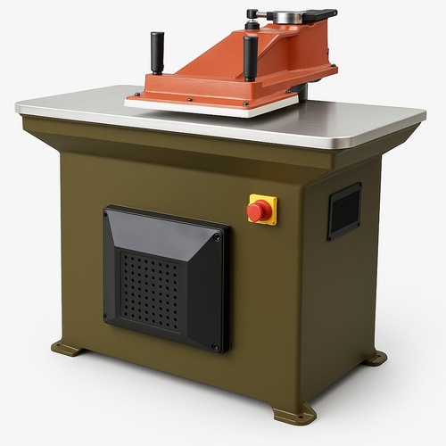 Automatic stainless steel hydraulic swing arm cutting clicking machine, model KS-22T. Features 2HP/1.5KW power and 650 kg weight. Ideal for 10-100mm feeding size.