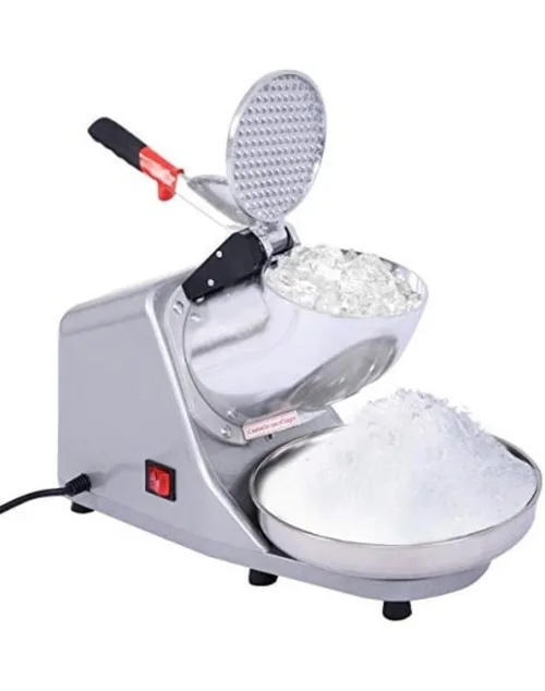 Semi-automatic stainless steel ice crusher machine for glass applications. Features a DC motor and silver finish for efficient ice crushing.