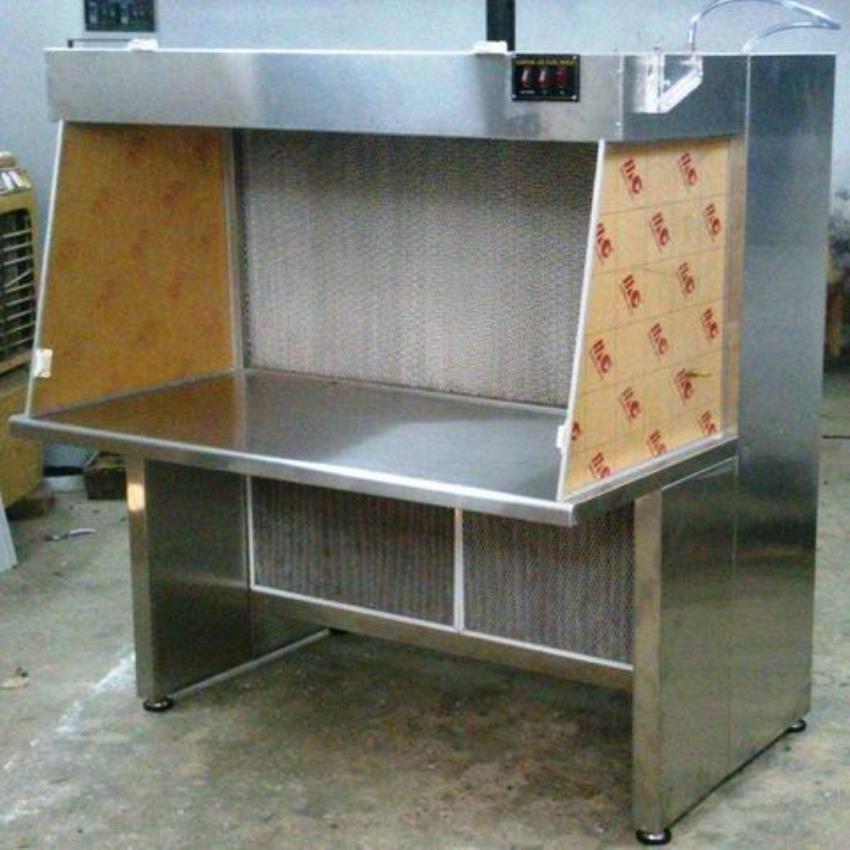 Horizontal laminar airflow cabinet constructed from stainless steel. Rectangular design, 2x2x2 FT size, suitable for laboratory applications. Offers controlled airflow for contamination-free environments.