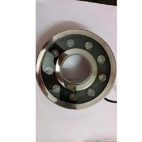 Round stainless steel LED swimming pool light. This device uses LED bulb type for efficient lighting applications in swimming pools.