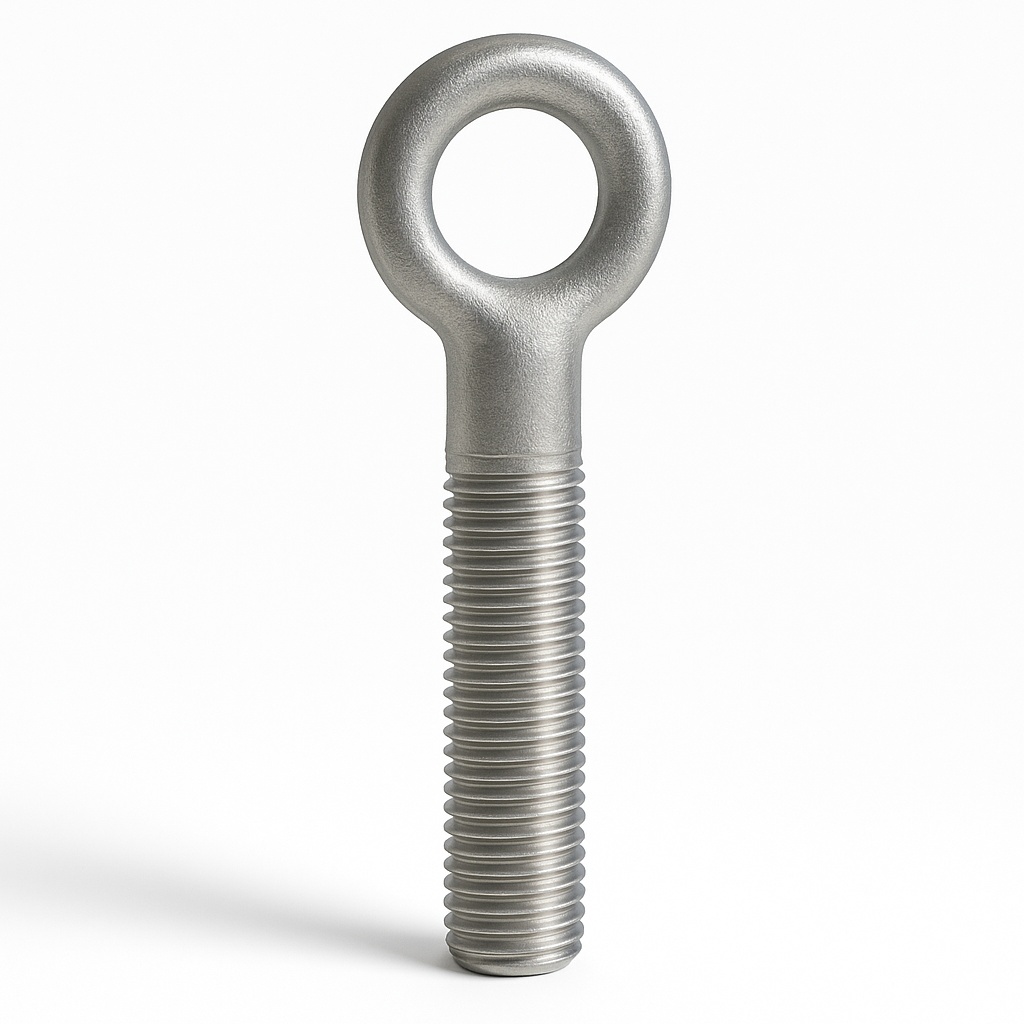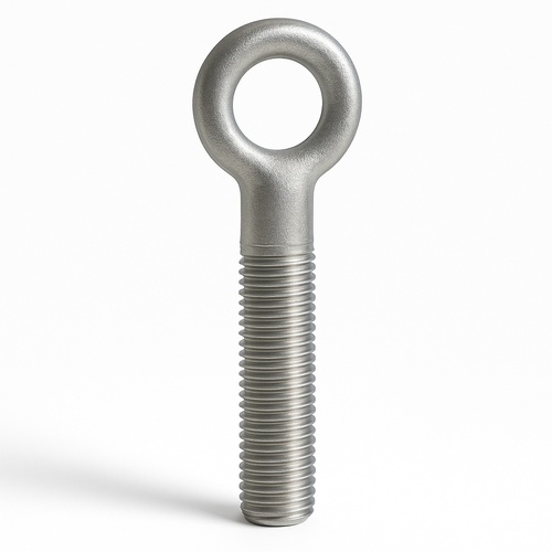 Stainless Steel I Bolt, 3-inch height, silver color. Features corrosion resistance and 50 HRC hardness with polished surface finishing for durable industrial use.