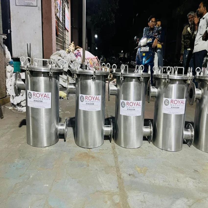 Stainless Steel Liquid Line Separator with Neodymium magnet. 300mm prong diameter, 751-1000 L/min filter capacity. Ideal for Food, Pharma, and Chemical industries.