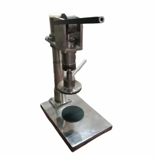 Stainless steel manual lug capping equipment. 15 Kg weight, 800mm conveyor height. Achieves 20 bottles/min capacity for lug capping applications. Model MLS-005.