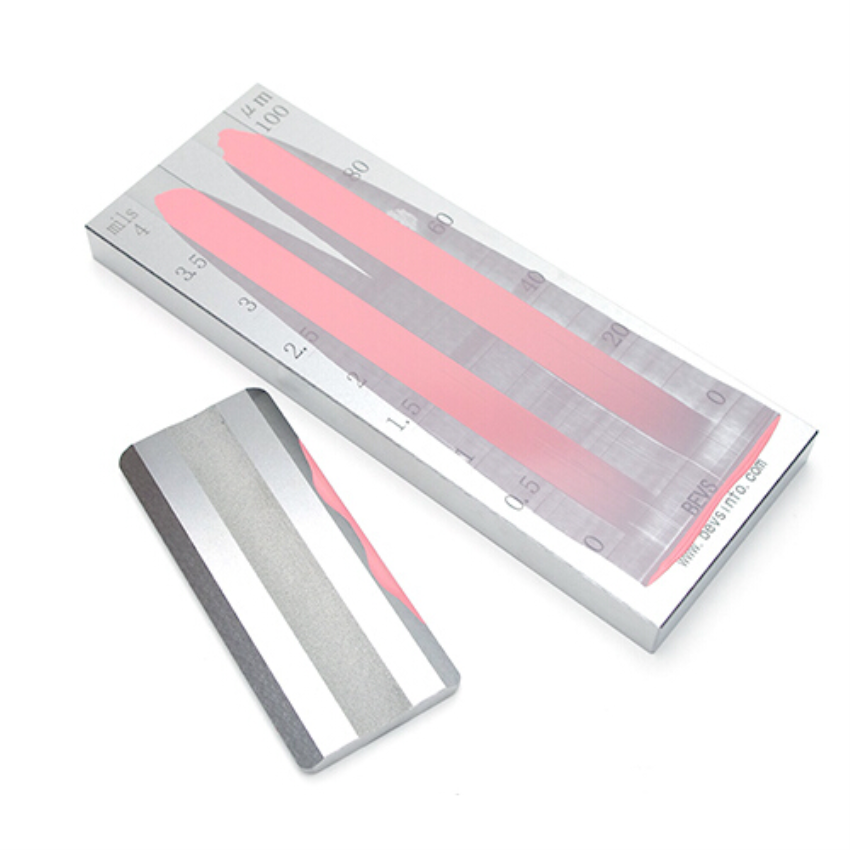 Manual stainless steel grind gauge with 50 mm diameter. Features 140x12.5 mm groove size and adjustable length. Available in single/double channels with a range of 0-100 microns.