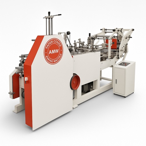 Polished stainless steel paper cover making machine. Durable construction for high-volume production. Reliable equipment for creating paper covers.