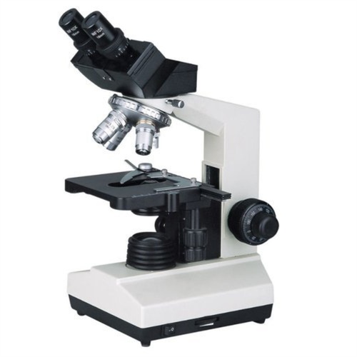 Stainless steel binocular research microscope for scientific labs. Offers magnification from 40x to 1600x. Eyepiece options of 10x or 16x, with objectives at 4x, 10x, and 40x.
