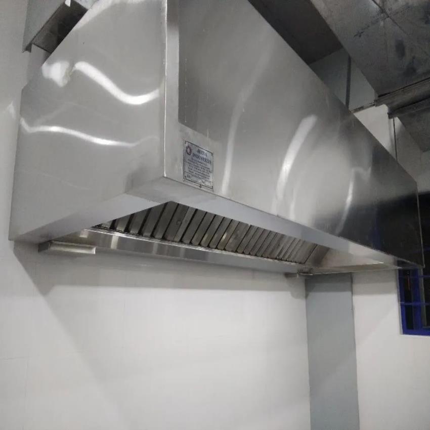 Stainless steel wall hood equipment for restaurant use. Durable construction made in India, ensuring longevity and hygiene for commercial kitchens.