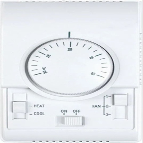 Durable stainless steel room thermostat for precise temperature control. Standard size and weight, manufactured in India. Warranty details available upon request.