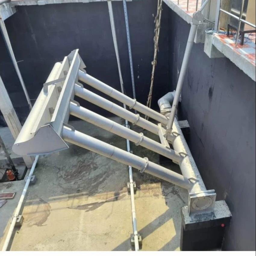 Stainless Steel (SS) SBR moving decanter with 100 KLD capacity. Features 2 air blowers and 100 m3/day inlet flow rate. Prefabricated installation for sewage, wastewater, and effluent.