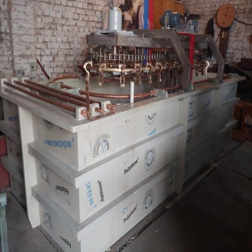 Industrial stainless steel semi-auto plating machine for continuous plating. 240V electric-powered with 2 HP motor, 400 kl capacity. Rectangular shape, 3 feet height.