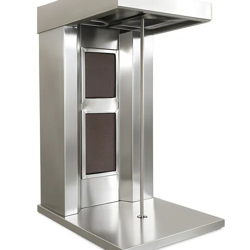 This gas-powered shawarma machine is constructed from durable stainless steel, suitable for hotel use. It operates at 0.8 kW and measures 530 x 630 x 1050 mm, weighing 34 kg.