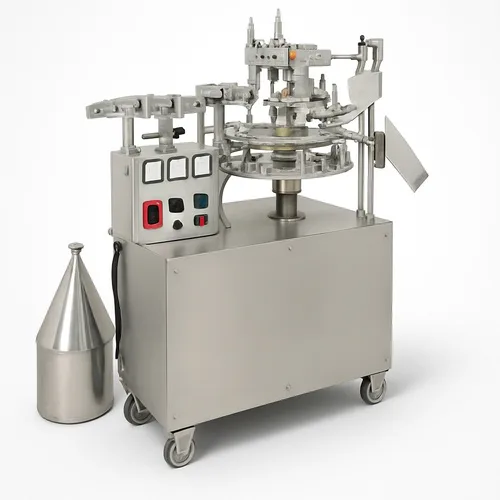 Automatic tube sealing machine made of SS 304 stainless steel. Processes 500-1000 pouches per hour with packaging sizes from 10 gm to 100 gm.